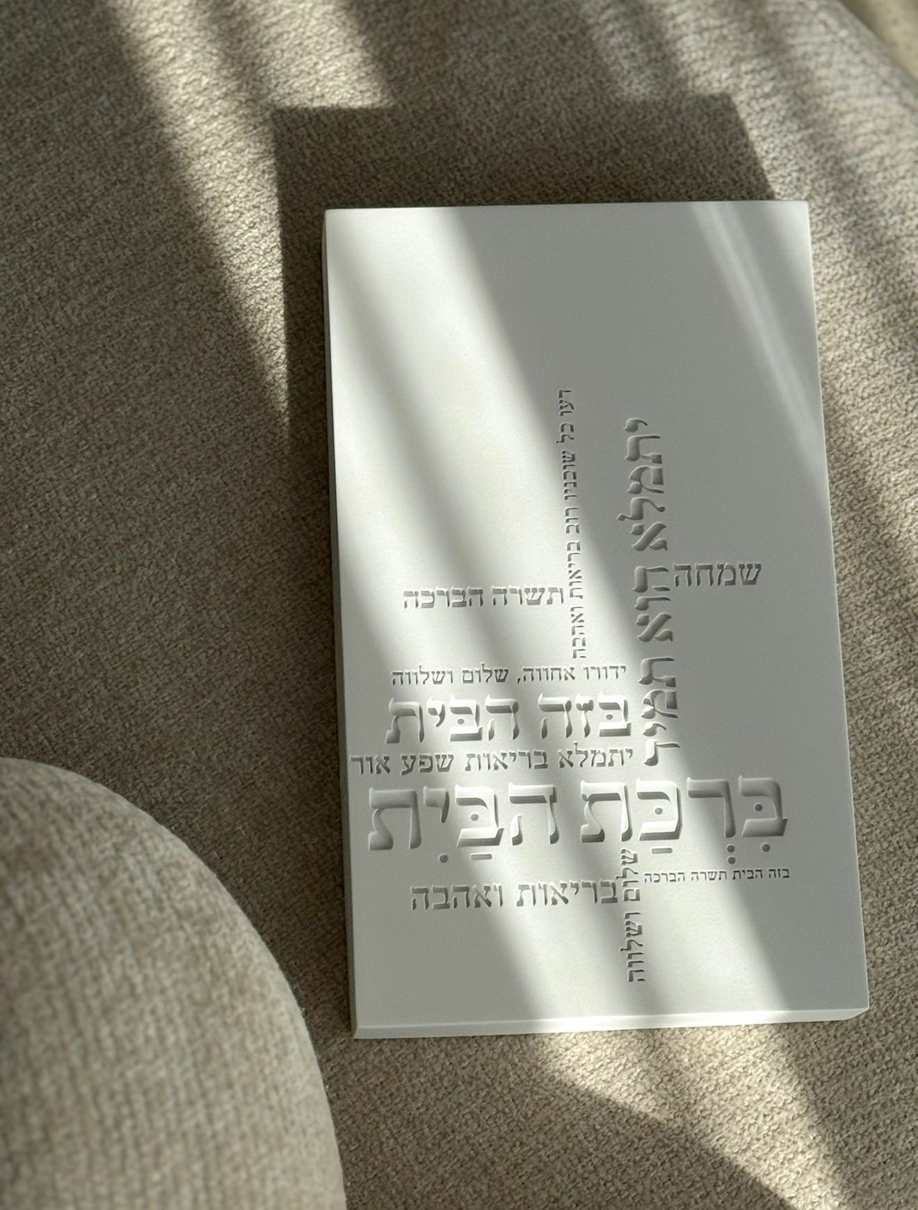 תלו או הניחו את ברכת הבית מבטון לבן. העיצוב המודרני והבטון הלבן יוצרים נוכחות חזקה שמרימה את האווירה ומזמינה שלווה כבר בכניסה. פריט שמוסיף כוח. משמעות וסטייל נקי לכל בית.