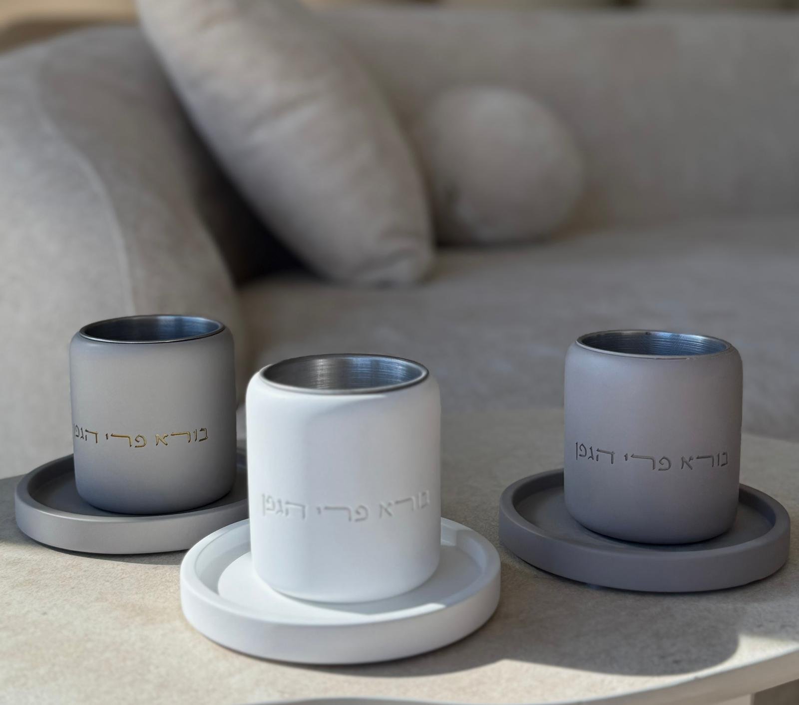 כוס קידוש מבטון אפור שמוסיפה נוכחות יוקרתית לכל שולחן שבת. היא מציגה עיצוב מודרני, קווים נקיים ותחושה מרוממת שמעצימה את רגע הקידוש. הגימור המדויק יוצר חוויה מרשימה, והצבע האפור מעניק מראה אלגנטי שמתאים לכל בית.
