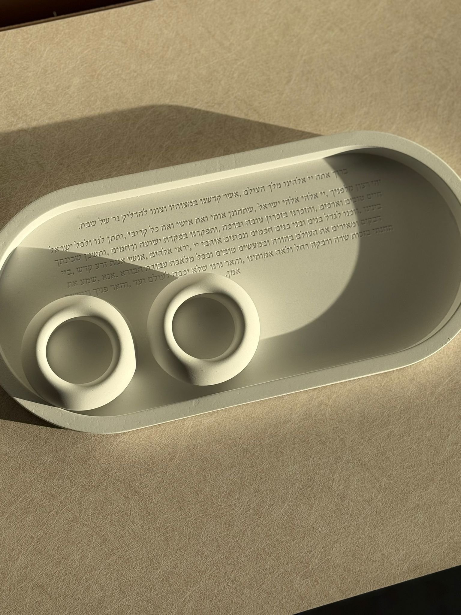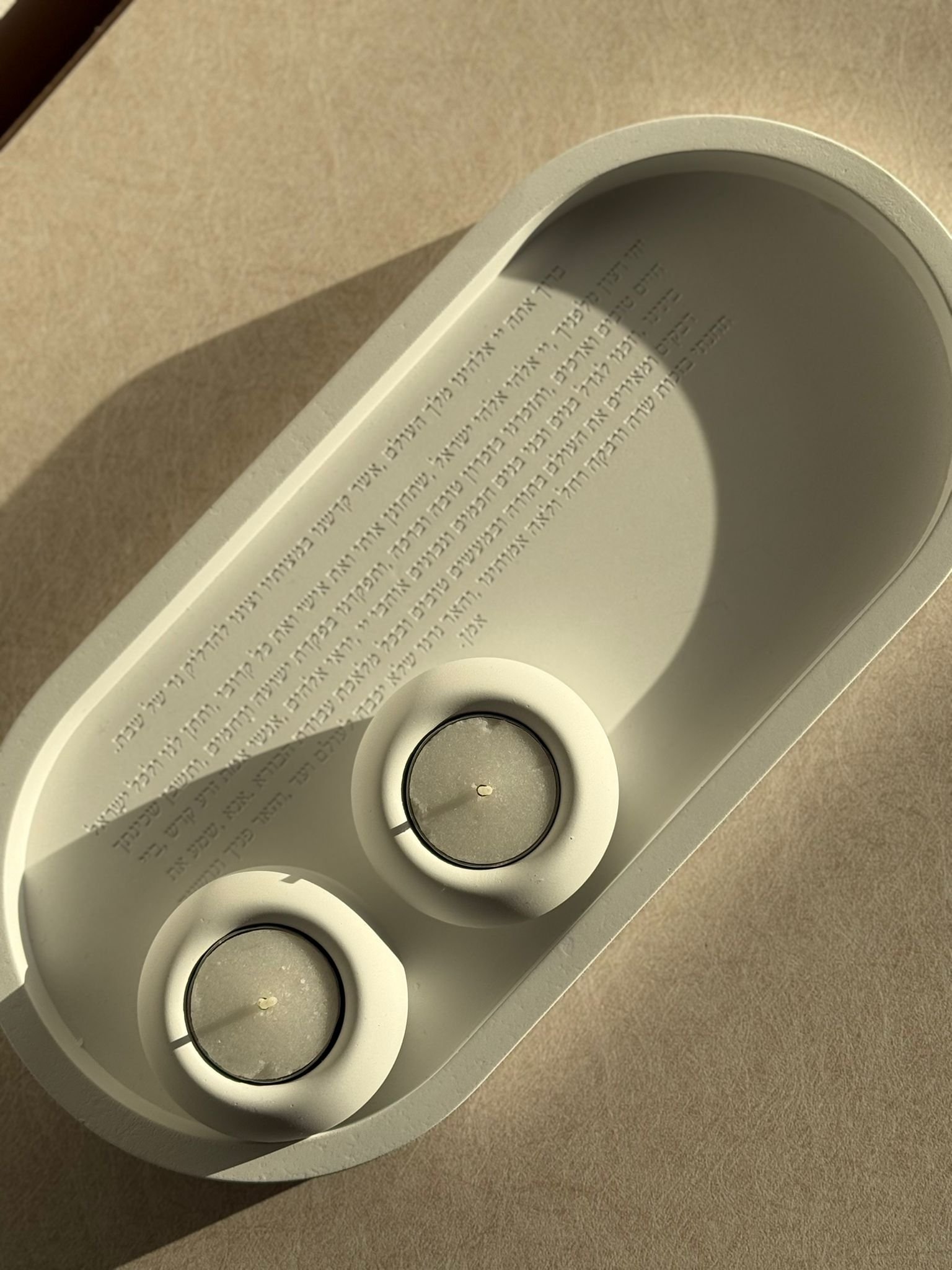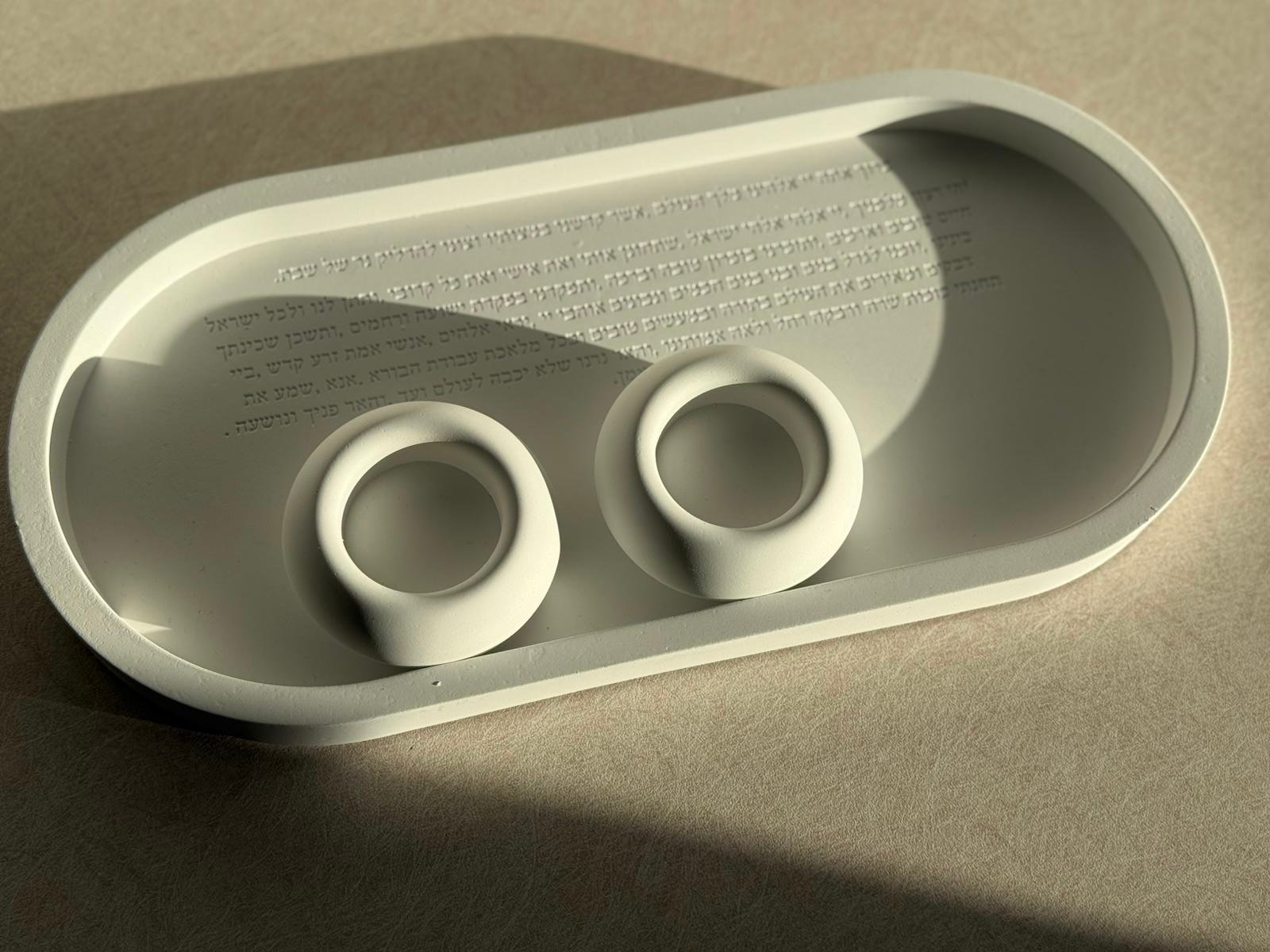 מגש מבטון עם ברכה להדלקת נרות שבת