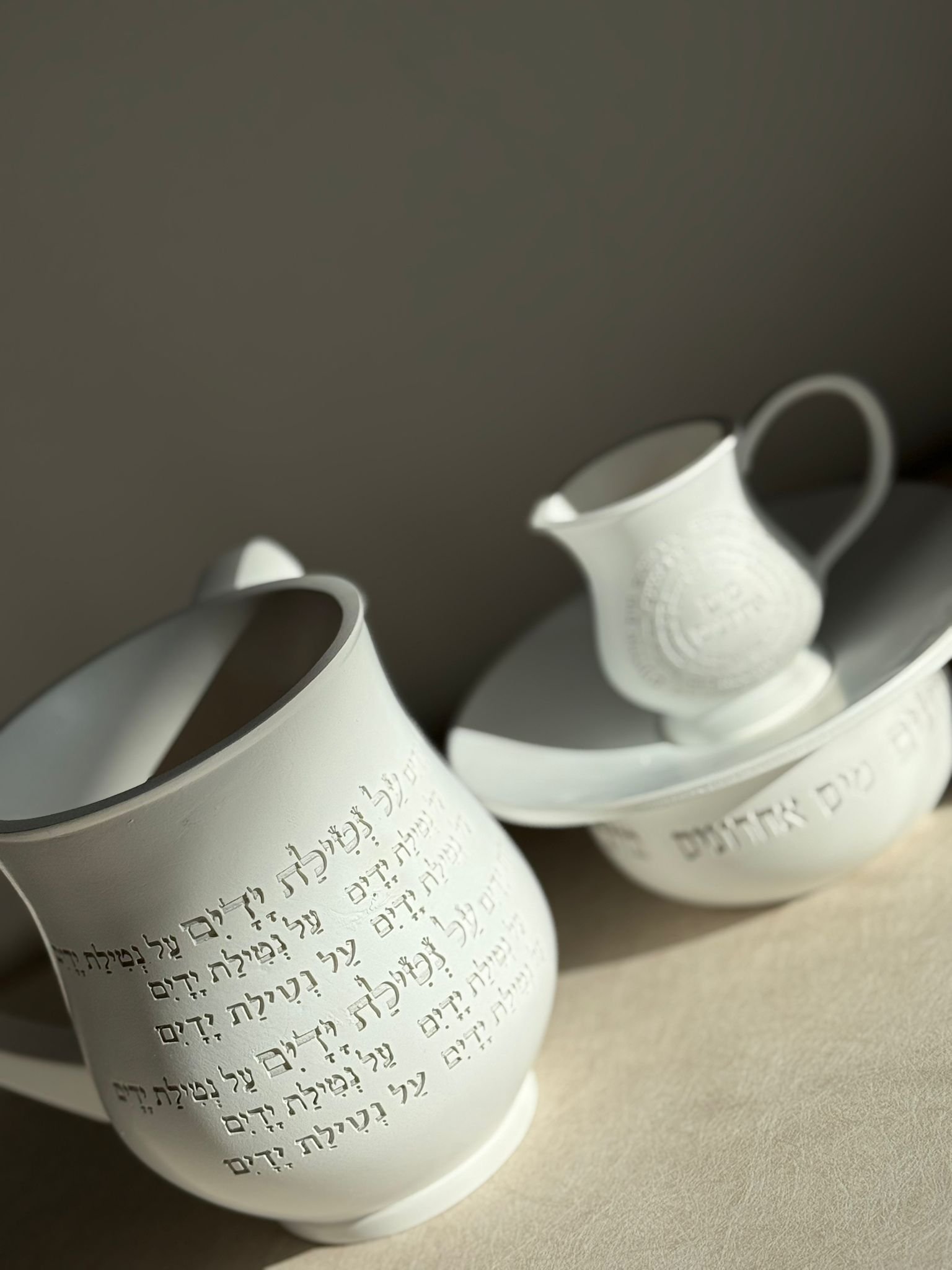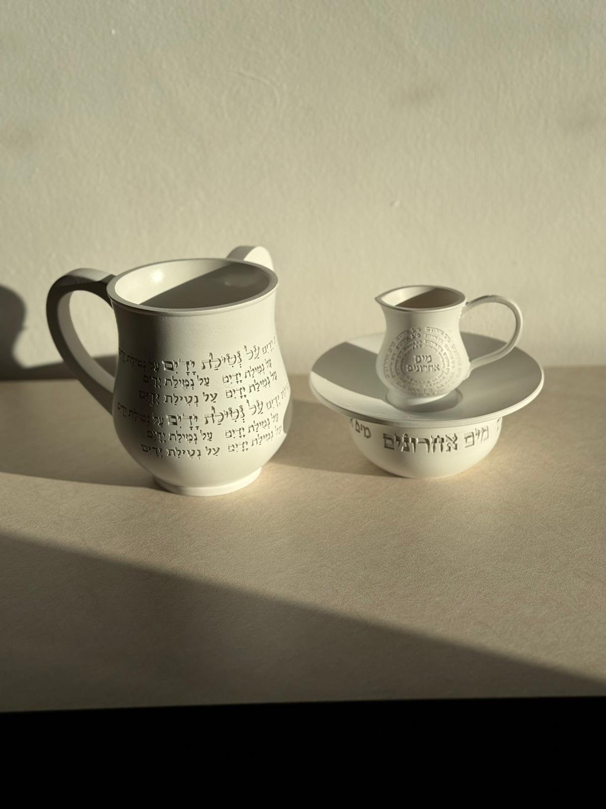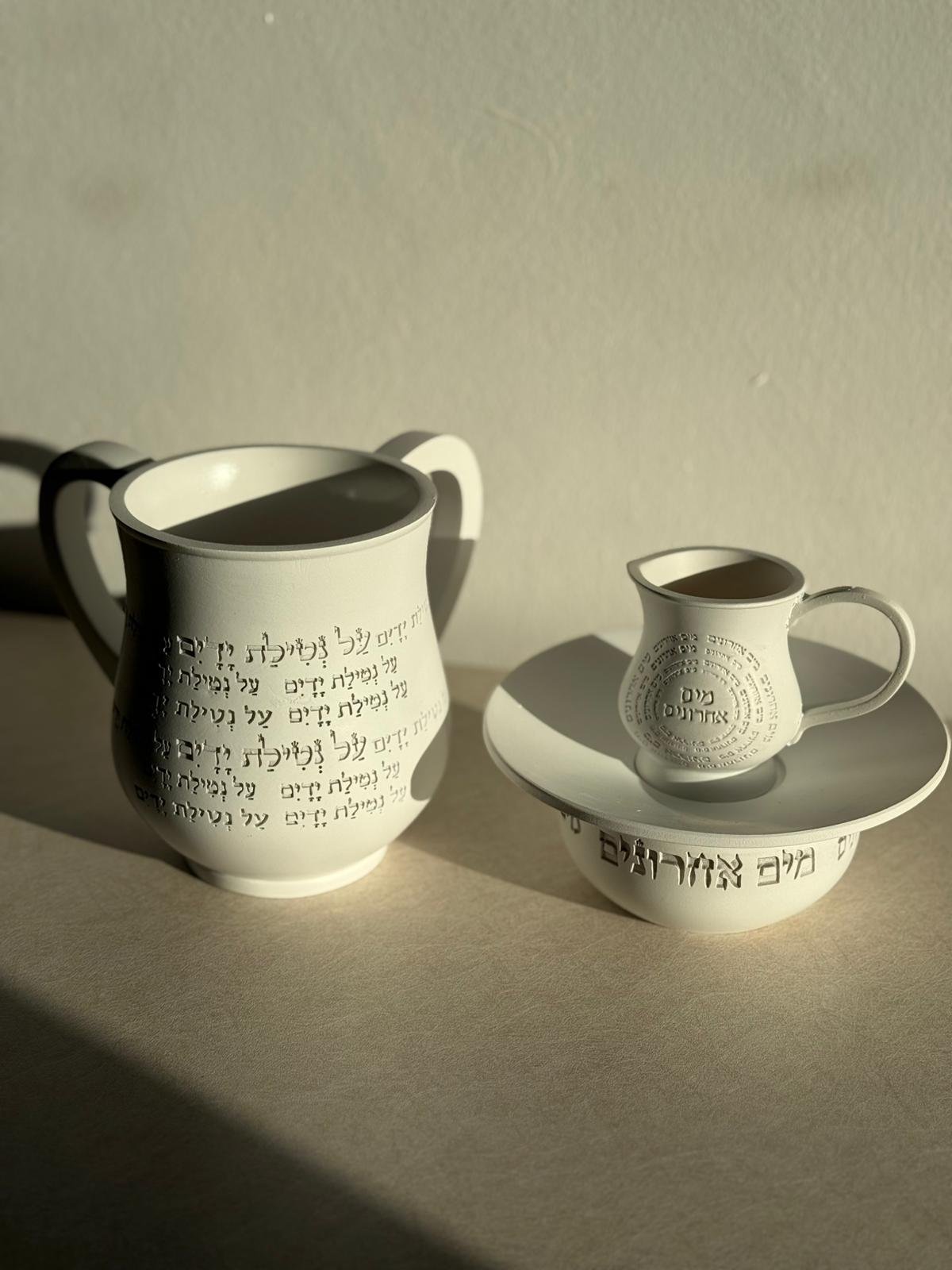 סט נטלה ומים אחרונים לבן , אתה מרים את הנטלה, מוזג מים, והסט פשוט מדליק את כל החוויה. הסט נותן למצווה כבוד, מוסיף ברק לשולחן ומכניס לבית תחושת טהרה אמיתית. הוא תופס את העין, מרגיש איכותי ומעלה את כל האווירה מדרגה. כל שימוש מרגיש נכון, מכובד ומלא משמעות.