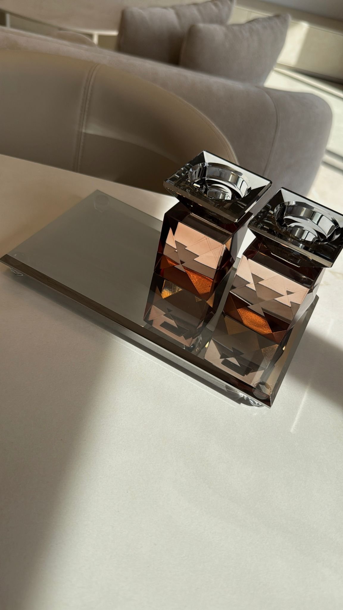 פמוטי קריסטל ומגש מהודרים שמרימים את שולחן השבת לרמה אחרת. הוא מוסיף ברק יוקרתי. מאיר את החלל בנוכחות אלגנטית ומייצר תחושת חגיגיות שמרגישים מהרגע שמדליקים את הנרות. זהו פריט דקורטיבי שמושך תשומת לב ומשדר סטייל בכל בית.